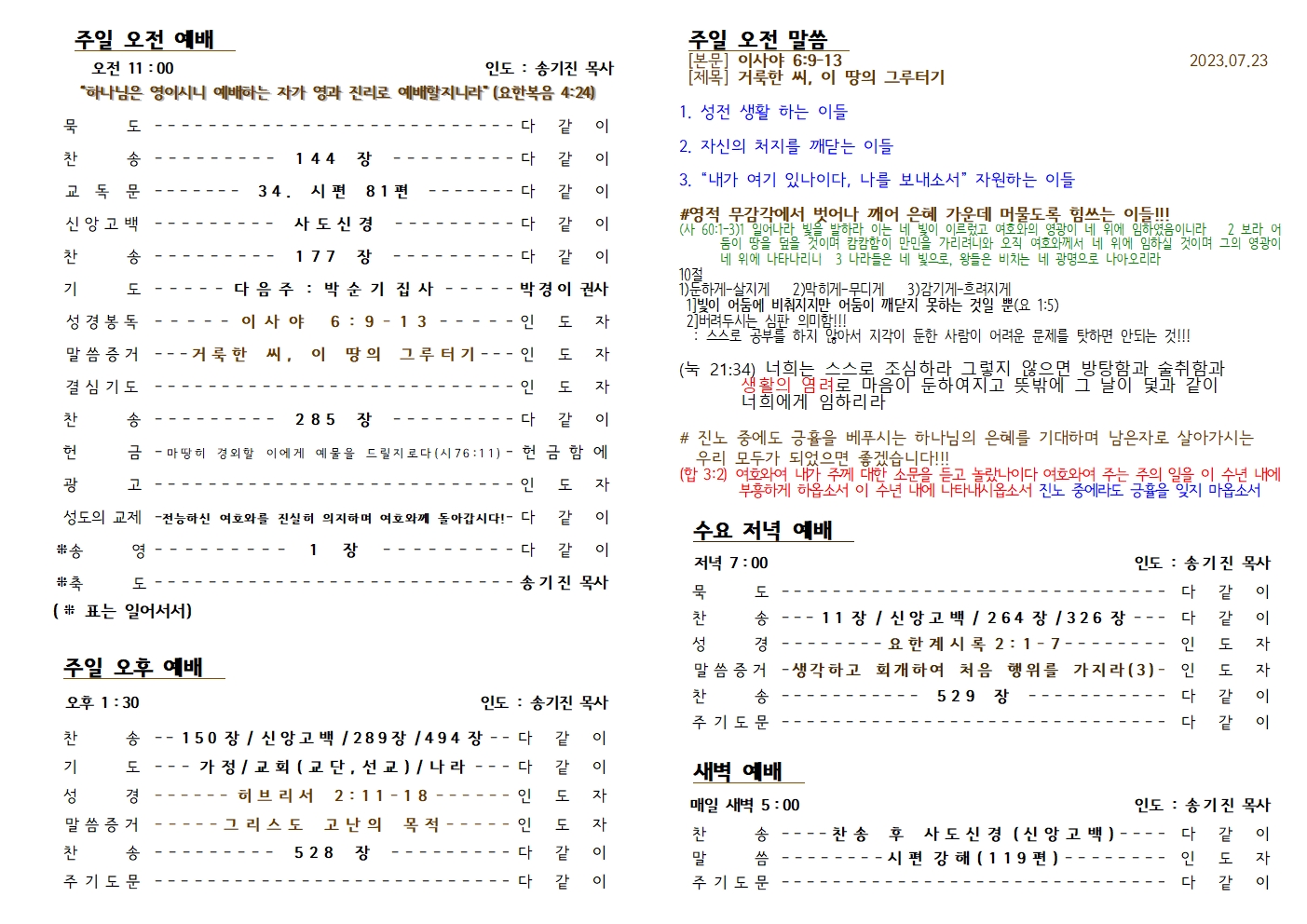 2023년 7월 23일 주보
